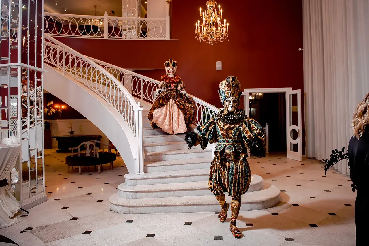 Мраморные лестницы и зеркальные арки создают эффект роскошного приёма и идеально подходят для welcome-зоны и фотосессий.